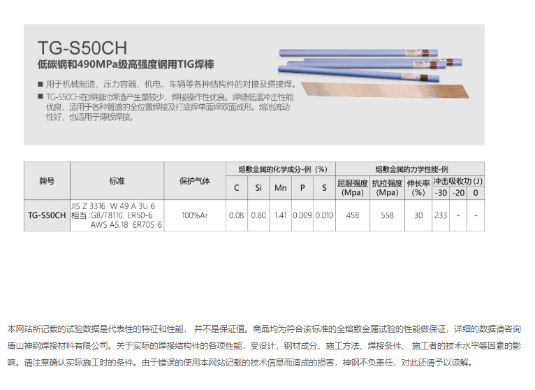 TG-S50CH 低碳鋼和490MPa級高強度鋼用TIG焊棒
